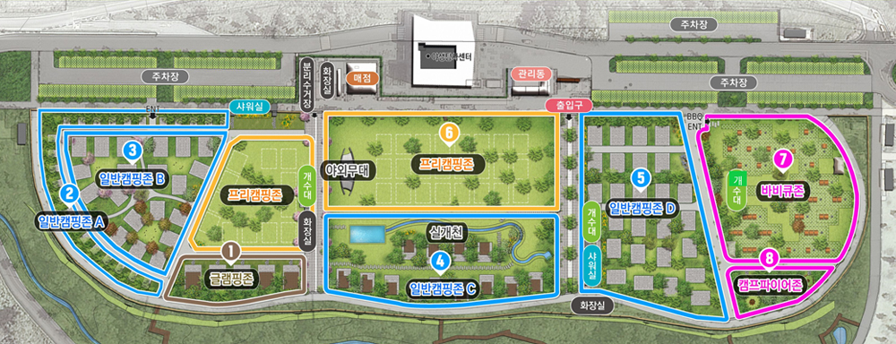 텐트 및 그늘막, 바비큐그릴 등 캠핑용품의 대여도 불가능합니다. 개인‧공중 보건위생 등 청결 문제를 사전에 예방하기 위한 것으로, 글램핑존 외의 공간을 이용할 경우 캠핑용품은 직접 준비해 주시기 바랍니다