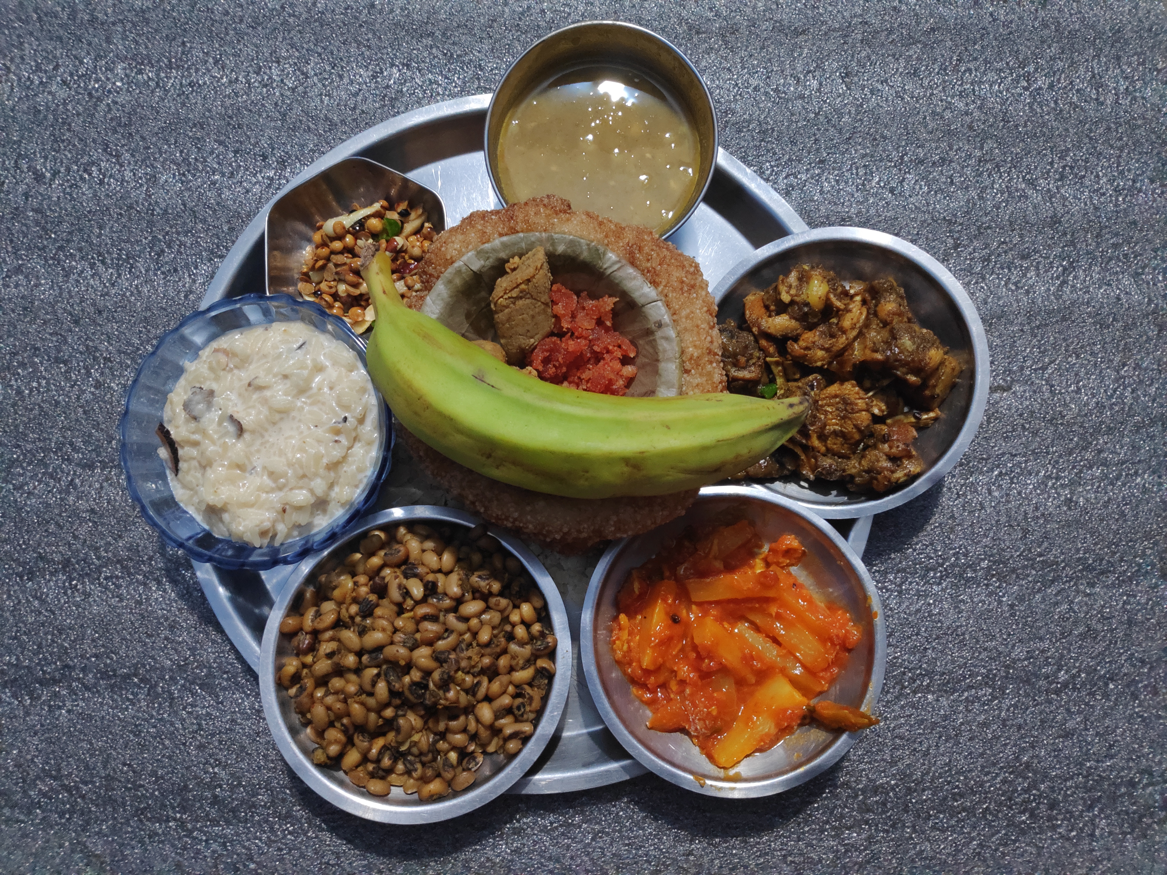 Samay Baji는 전통 네와리 요리로 축제나 특별한 날에 즐겨 먹습니다. 납작한 쌀(베푼 쌀), 훈제 고기(보통 버팔로), 삶은 계란, 검은콩, 생강, 마늘 및 기타 다양한 양념으로 구성됩니다. Samay Baji의 맛과 질감의 조합은 진정으로 감각을 위한 치료입니다.
