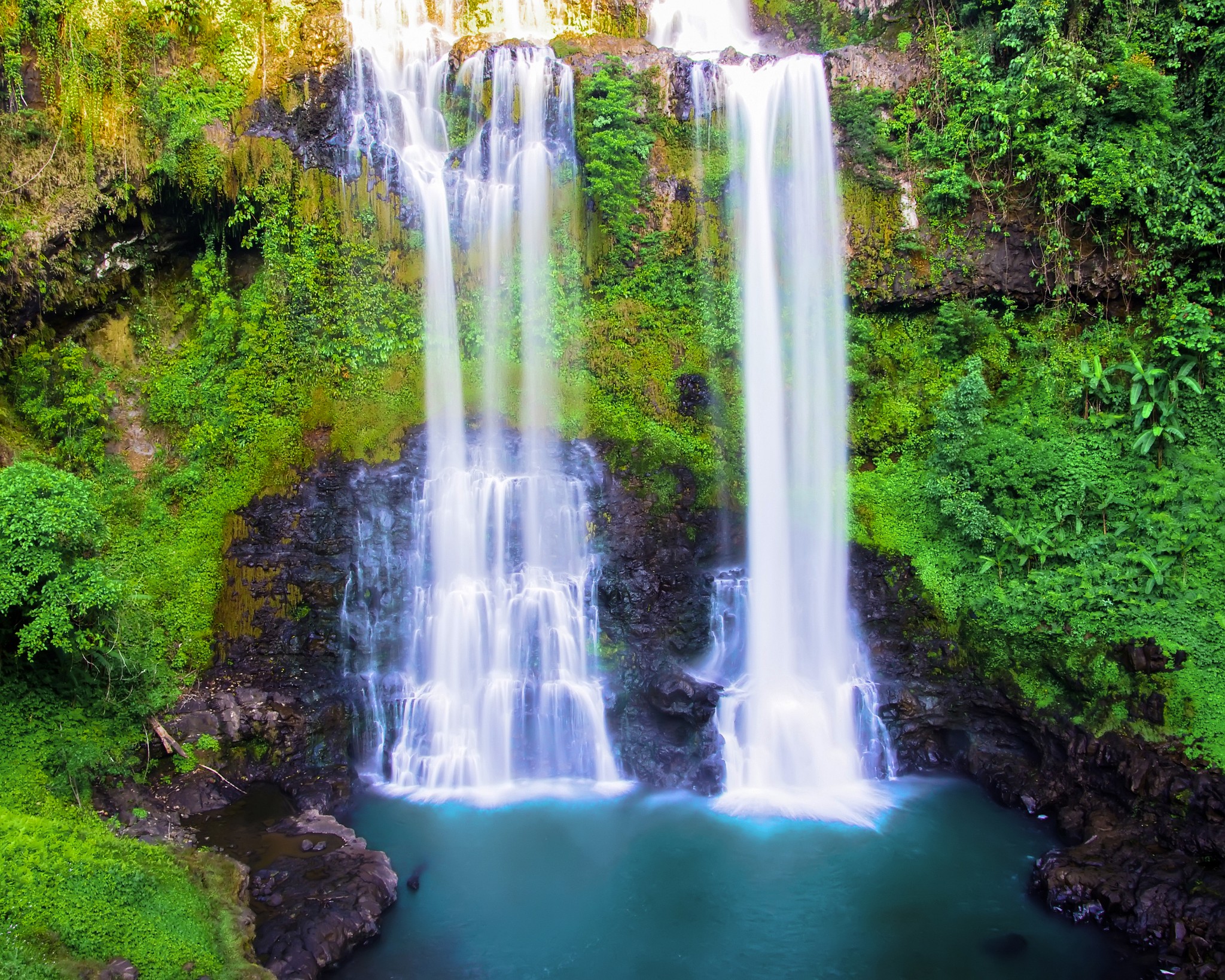 타드 팡 폭포는 두 개의 웅장한 폭포가 병렬로 떨어지는 아름다운 경관을 자랑합니다. 이 폭포는 볼라벤 고원에서 가장 유명한 명소 중 하나로, 주변의 울창한 숲과 함께 그림 같은 풍경을 제공합니다.